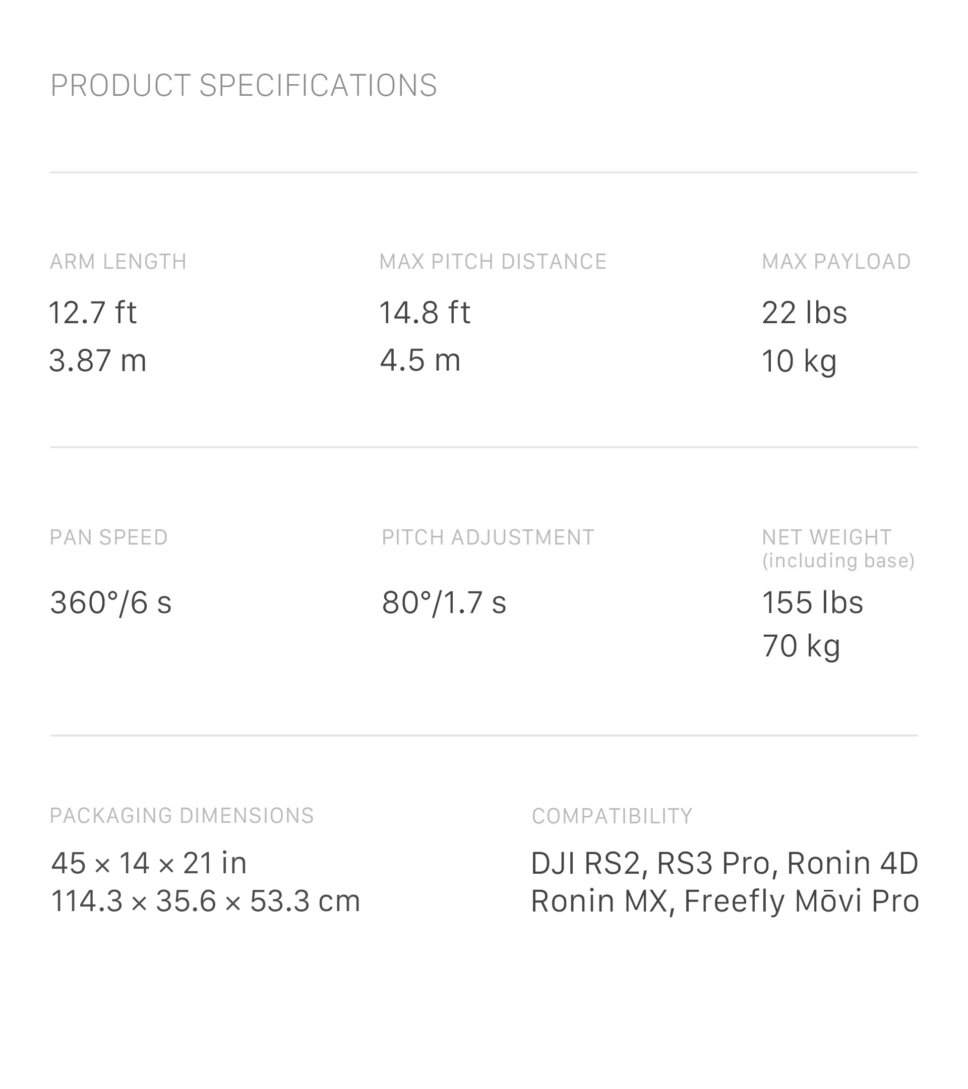 Designed specifically for the RS 3 PRO and RS 2, but compatible with a range of gimbals and camera systems such as the Ronin 4D, Ronin MX, Freefly Movi Pro.