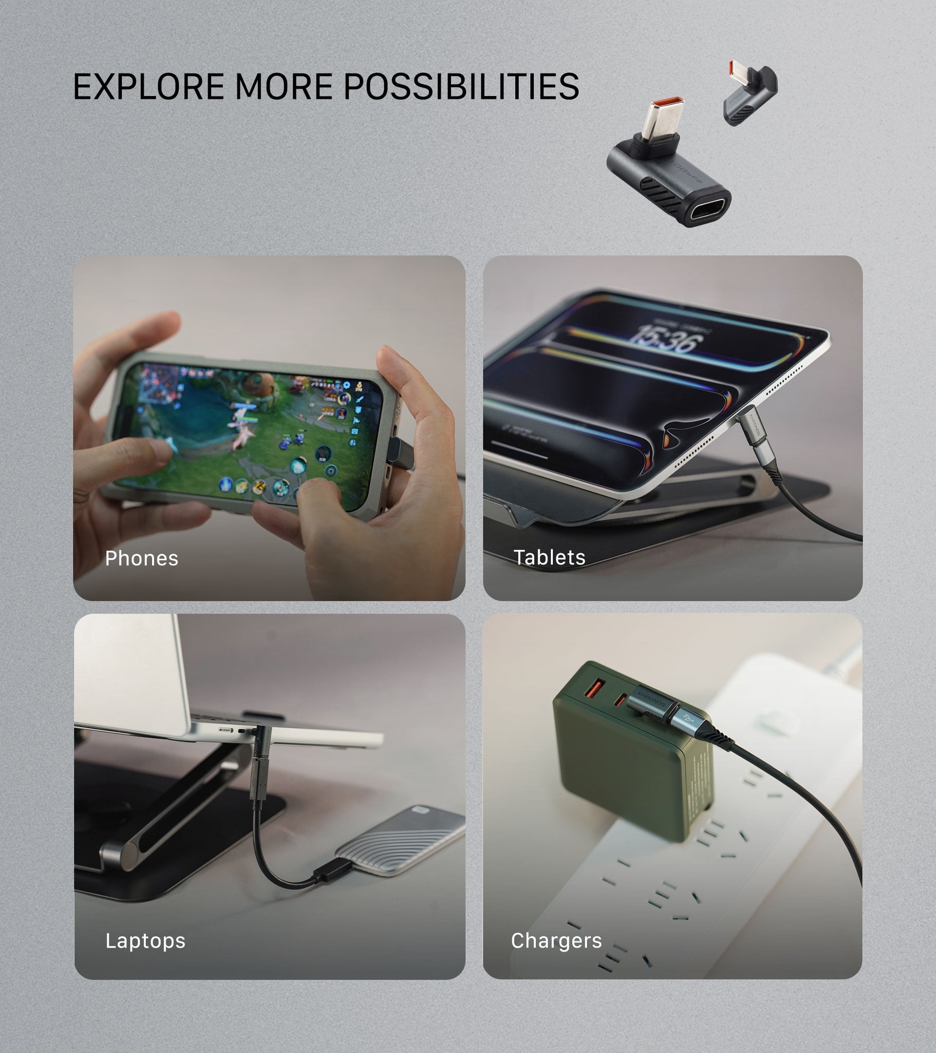 This adapter is designed to optimize your setup by utilizing a right-angle design to eliminate crowded ports and prevent connected accessories from blocking adjacent inputs.